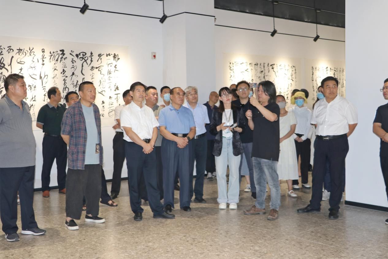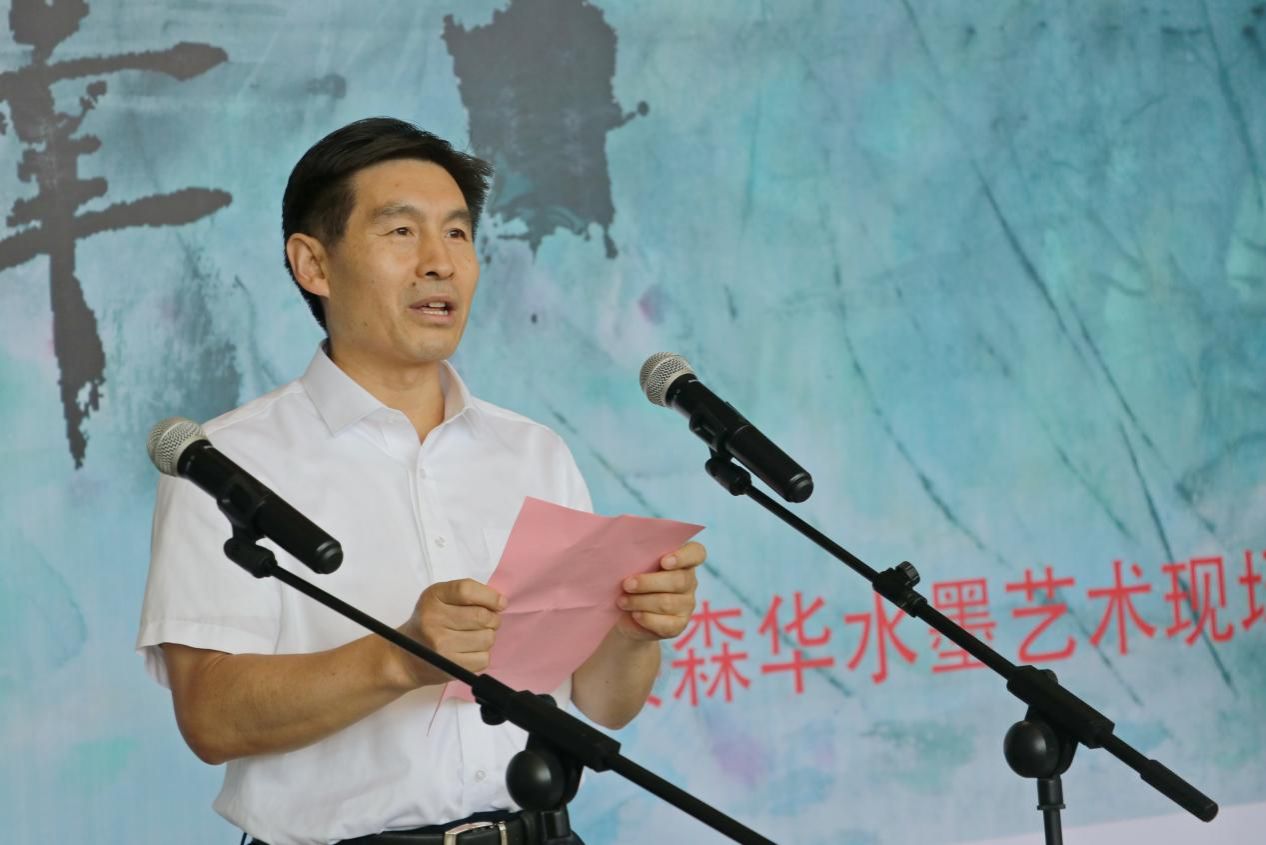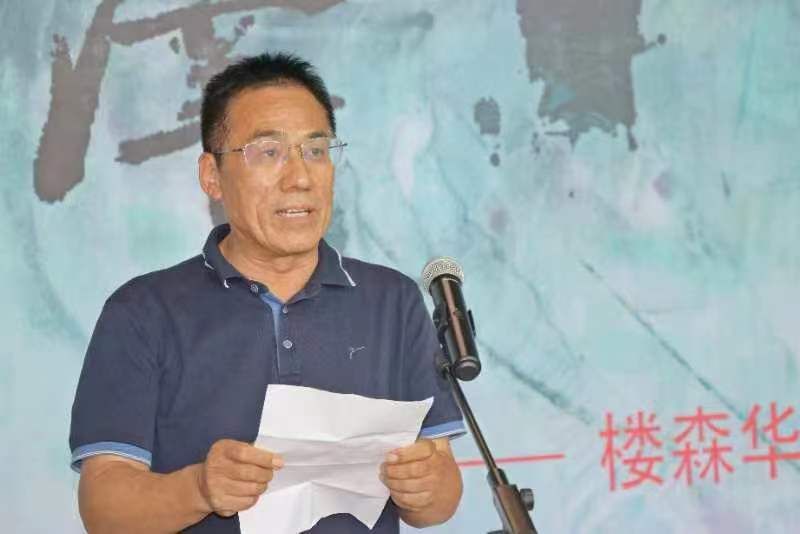 开幕式上,市人大常务委员会主任王磊发表了热情洋溢的讲话。他说,我们今天雅聚万花湖美术馆,参加“雷泽”楼森华水墨艺术现场活动开幕式,这是我市文化艺术交流的一个重要活动,是推进我市文化事业繁荣的重要措施,也是展现菏泽厚重历史文化底蕴、提升菏泽形象和影响力的重要载体。值此酷暑季节,楼森华先生应邀来菏,连续进行了十几天的艺术采风和文化调研,对菏泽深厚的文化底蕴作了深入挖掘,产生了丰富的创作灵感,文思泉涌,泼墨挥毫,以独特的视角和深刻的理解,用水墨艺术将菏泽历史文化凝聚笔端,在短短几天里,创作出50余幅构思奇妙、尺幅巨大、笔墨生动、美仑美奂的书画作品。如果没有深厚的文化功底,没有坚实的日常积累,没有精湛的艺术功力,没有对菏泽文化的深入调研和热爱,是无法理解和难以想像的。对此,我们向楼森华先生表示由衷敬意和诚挚的谢意,也衷心期待更多的艺术家,像楼先生一样,走进菏泽、了解菏泽、写菏泽,画菏泽,宣传菏泽,为菏泽的历史文化创新传承,为菏泽的经济社会高质量发展,为菏泽突破发展、后来居上,共同合作,携手奋进。
