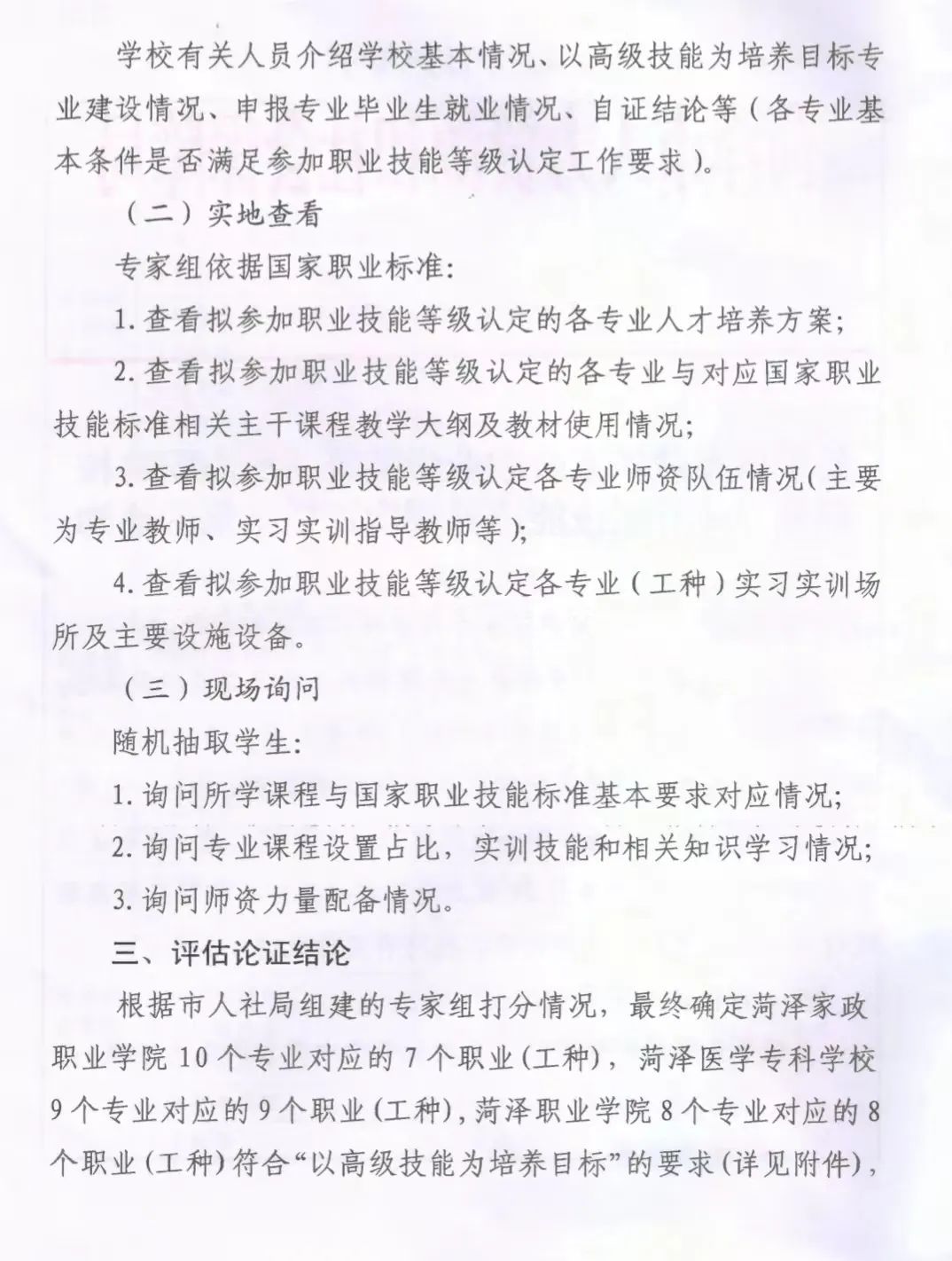 近日菏泽市人力资源和社会保障局发布了《关于公布菏泽家政职业学院等三所高职院校部分专业开展技能培养层次评估结果的通知》详细内容如下: