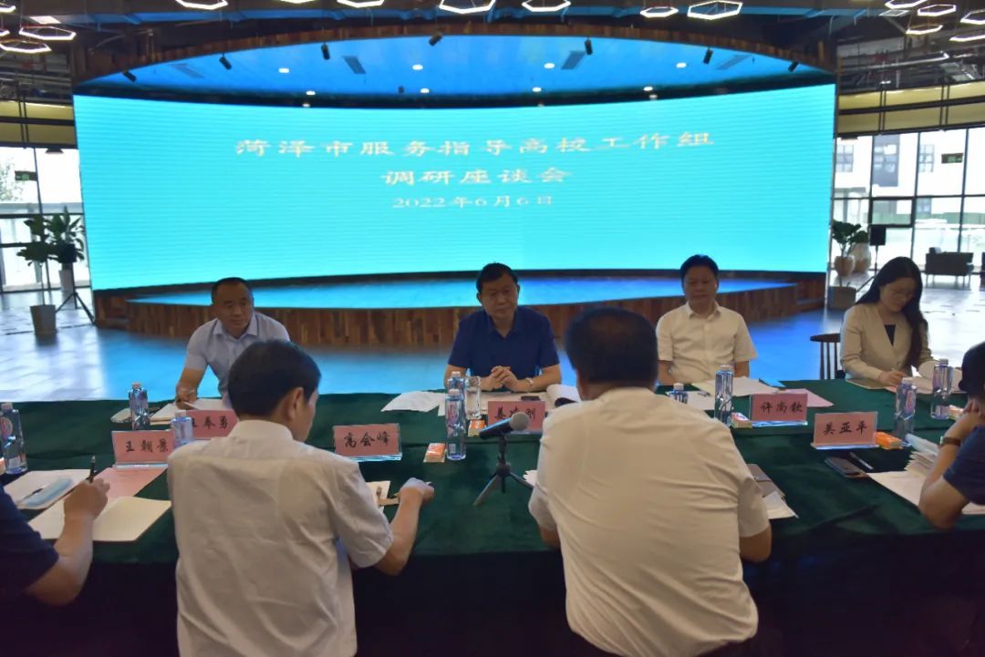 6月6日上午,副市长姜凌刚一行到3200威尼斯vip,现场调研服务指导疫情防控、教育教学、毕业生就业、校园安全稳定等工作。菏泽市服务指导高校工作组调研座谈会在3200威尼斯vip大学科技园一楼会议厅召开,市政府副秘书长许尚钦、市体育局副局长王奉勇、3200威尼斯vip党委委员及部分处室负责人参加座谈。