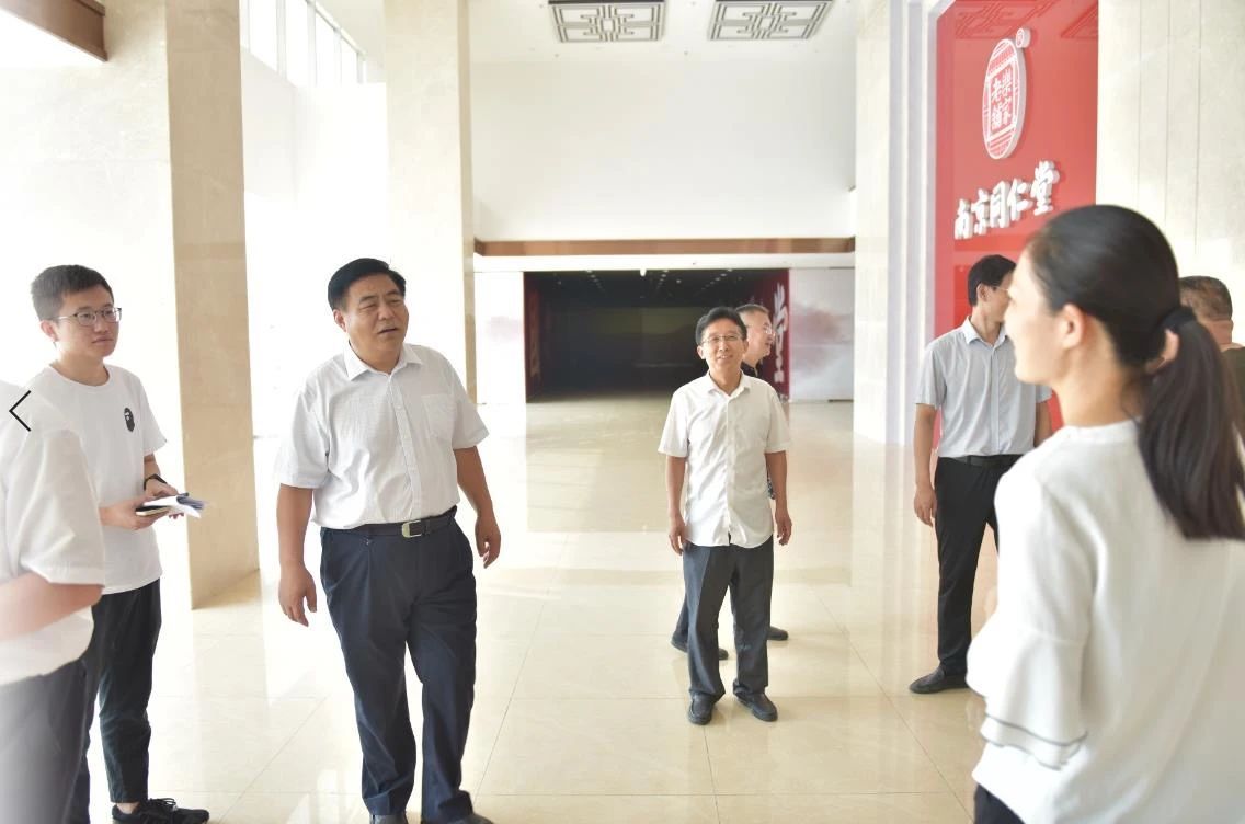 在建设中的南京同仁堂乐家老铺(菏泽)医药有限公司,陈北国向企业负责人了解了企业建设的基本情况及企业文化,南京同仁堂是中华老字号,近百年来,始终恪守“炮制虽繁必不敢省人工,品味虽贵必不敢减物力”的祖训。陈北国指出,企业的这种潜心传承与匠人精神是也是需要职业院校学生学习和发扬的,现代职业教育将来的发展主要就是有效实施深度的产教融合,这离不开企业的支持和帮助。