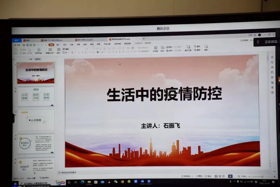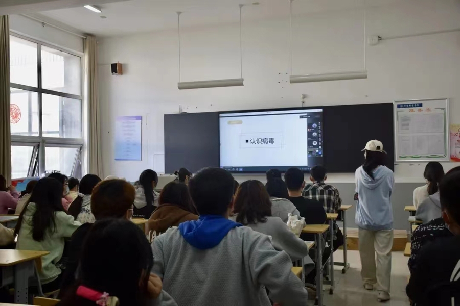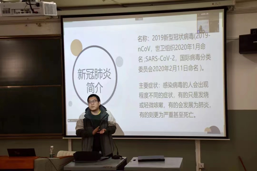 石振飞老师为新生同学们讲解了什么是新冠病毒、如何预防新冠病毒,新型冠状病毒的病理学、流行病学特征,并围绕新冠病毒的生存环境、传播方式、感染症状作了分析。石老师的讲解让学生们了解到疫情防控工作中,严格遵守防疫规定、注意个人防护的重要性,并鼓励学生积极响应疫情防控行动号召。