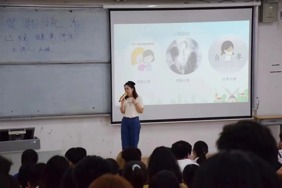 本次讲座由国家三级心理咨询师王迪老师主讲,王迪老师先后介绍了标准界限、不良心理行为、调试方法以及心理自我保健方法。当代大学生处于三观不稳定时期,学业、情感、经济、家庭是其主要心理困扰来源。通过王迪老师的专业讲述提高了同学们对心理健康调适的认识,其间穿插的鲜活案例更激发了同学们的情感共鸣。